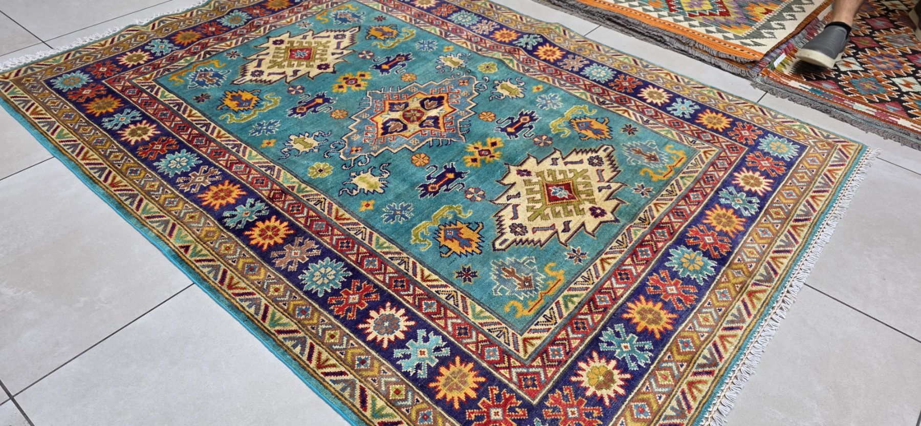 Afghan Kazak Carpet .Hand Knotted. 100% Wool
